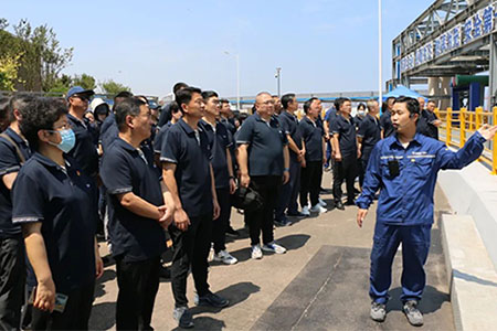 学校全体教职工参加了此次活动。 7月11日上午,山东港口工程高级技工学校全体教职工首先参观了作为山东港口读书会暨现场观摩会示范点的山东港口烟台港西港区的智慧码头和原油管道设施,现场观摩了各山东港口一体化改革发展成果。